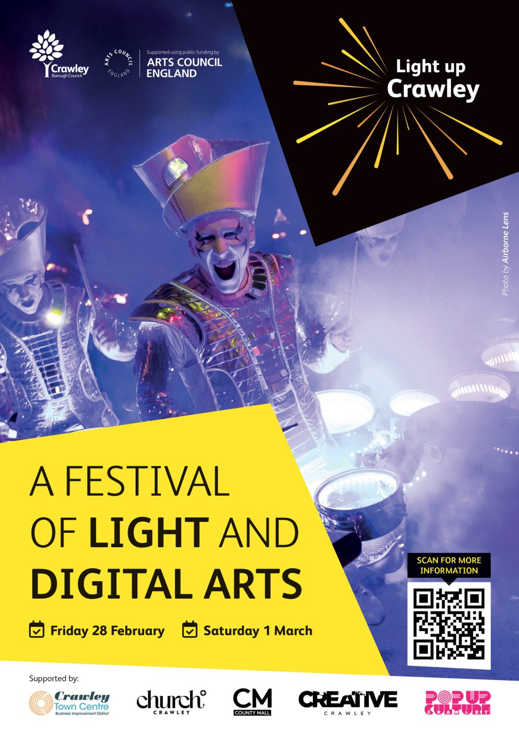 Supported by Arts Council England, Crawley Borough Council, Pop Up Culture Crawley, Towns Fund, UK Government.